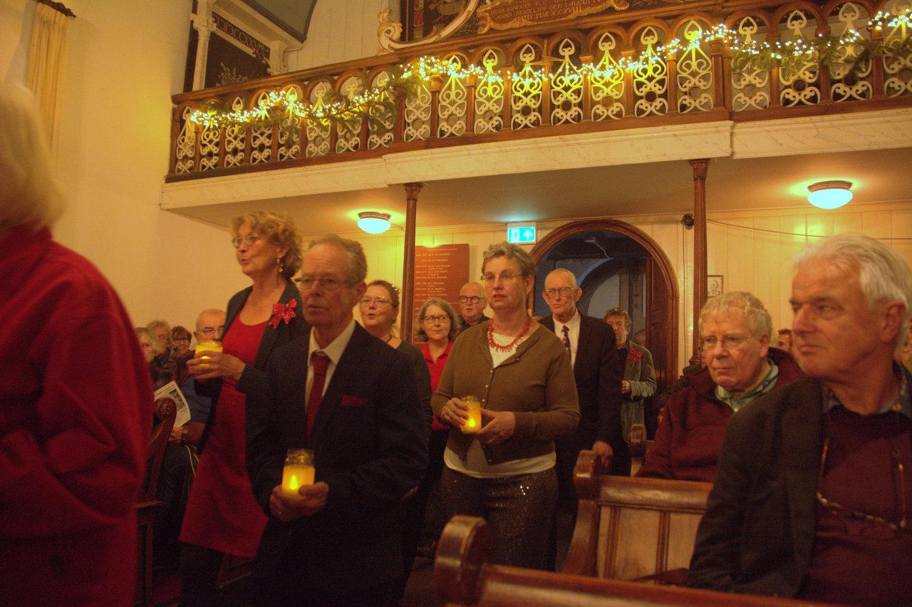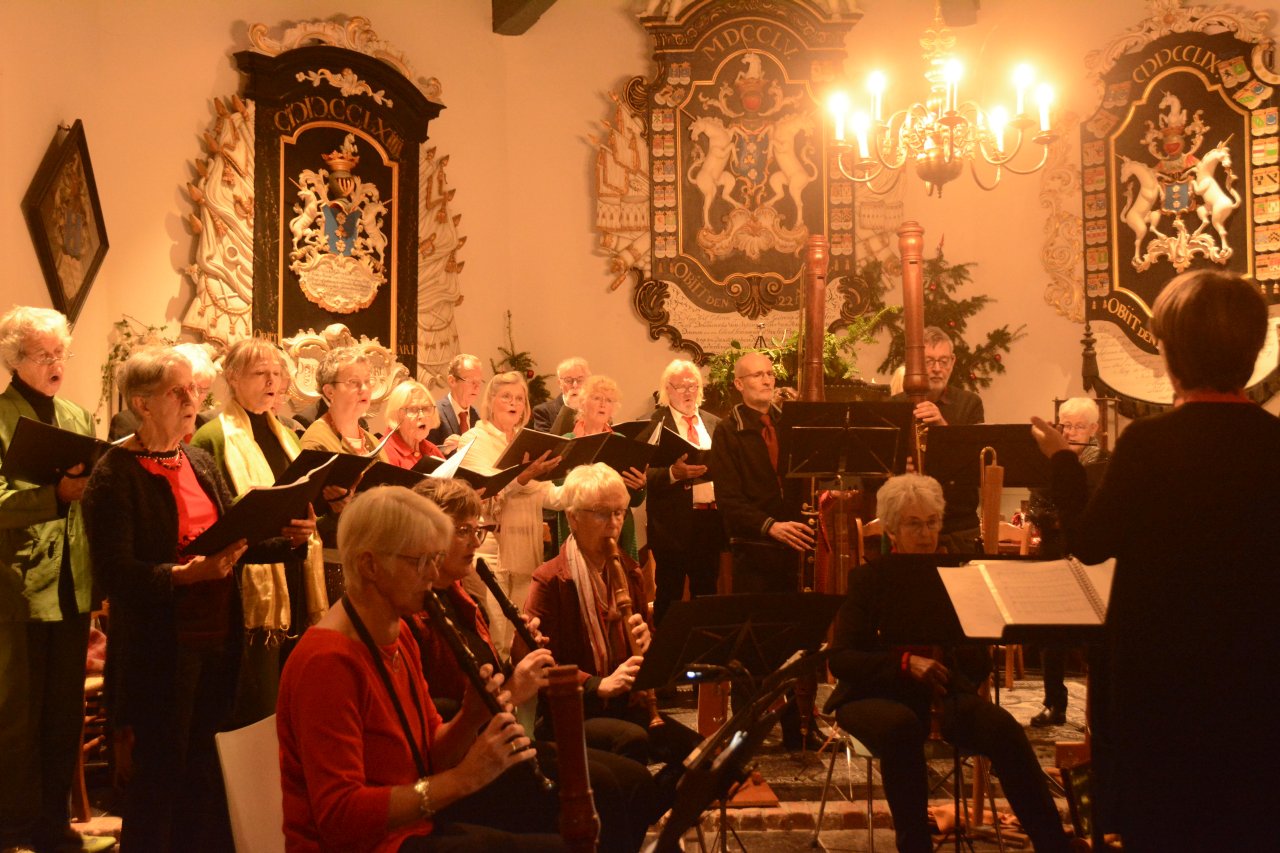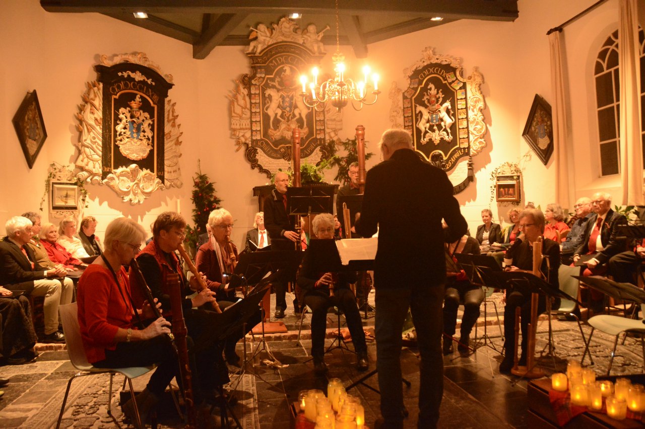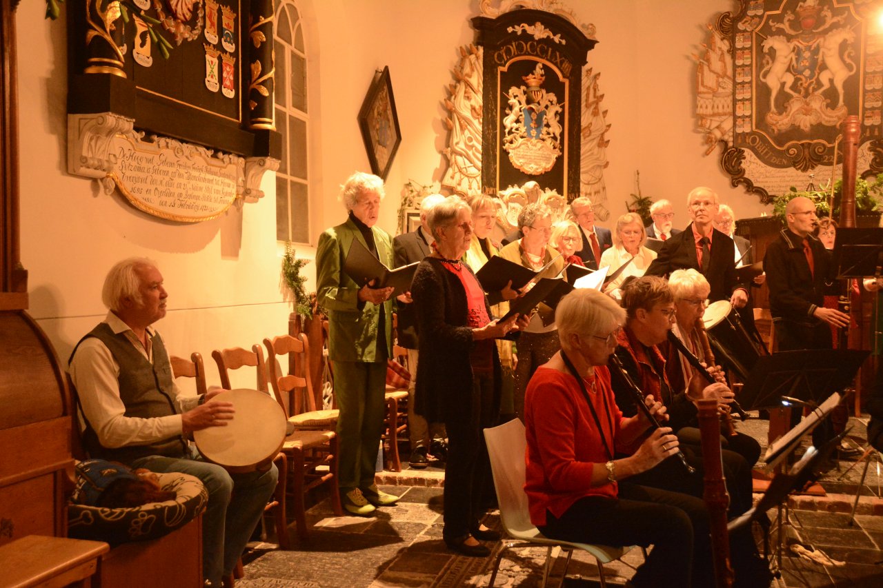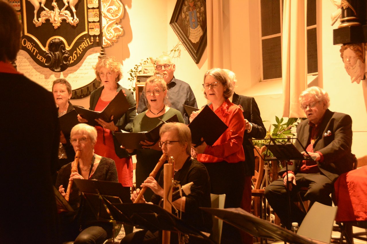 Een volle en mooi versierde kerk in Friens, voor het kerstconcert ‘Jolly Shepherds & Nymphs Sweet’ door Vivavox en het Sweelinck Blokfluit Ensemble op 17 december 2024. De kerstsfeer zat er goed in bij musici en publiek. Vivavox zong met name kerstliederen die hun oorsprong vinden in de 16e en 17e eeuw; het blokfluitensemble bracht werken van Charpentier, Telemann en Bach. Uiteraard hebben we ook enkele bekende kerstliederen gezongen samen met publiek, koor en blokfluitensemble – aangevuld met slagwerk. Er werd met alle aanwezigen afgesloten met een gezellige nazit , onder het genot van hapjes en drankjes.