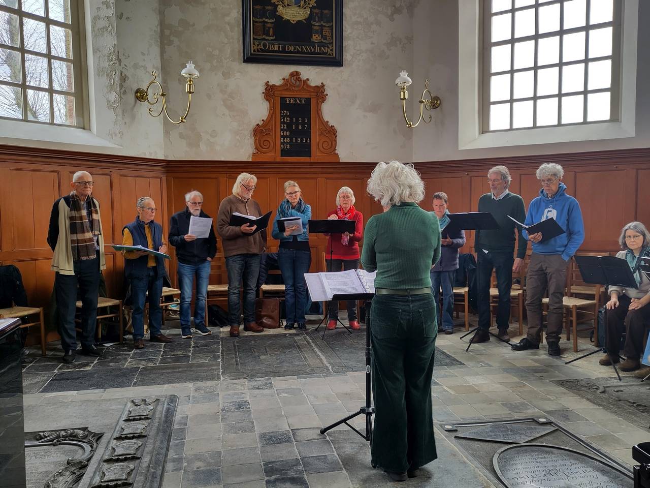 Met zangcoach Femke de Boer, onze dirigent Alie van Veldhuizen en bijna alle leden van Vivavox hadden we op 11 april 2026 een koordag in de Laurentiuskerk van Raerd. Met veel aandacht voor stemvorming en ademhaling én uiteraard aandacht voor het repertoire voor ons concert ‘Beestenboel’ op 31 mei. Veel gedaan, veel geleerd, veel tips en aandachtspunten. Het was niet alleen een mooie en nuttige dag, er was vooral heel veel muzikaal plezier en het klonk als een klok!